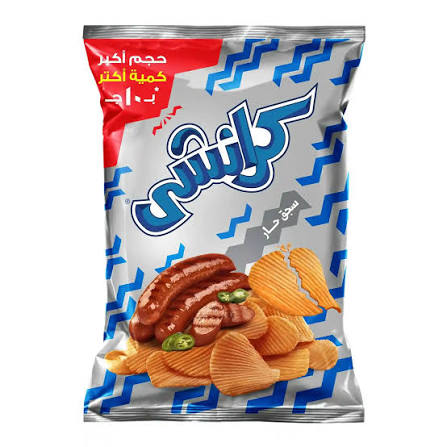 السجق الحار المقرمش يحتوي على نفس المحتويات شيبسي سجق مقرمش نفس الشيء بالإضافة إلى نكهة الحرارة.